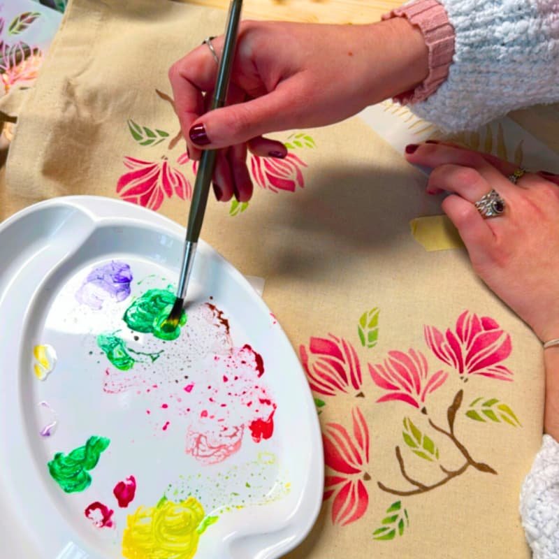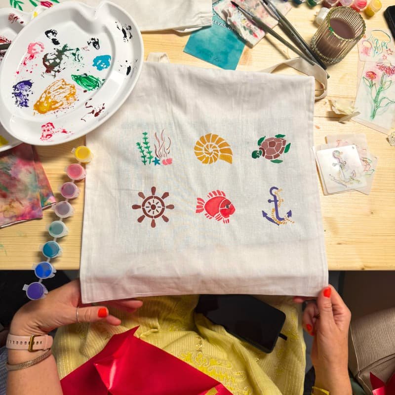 Únete a un taller creativo donde diseñarás y pintarás tu propia tote bag! Aprenderás a usar la pintura textil para crear un diseño único y lleno de personalidad. No necesitas experiencia previa, solo ganas de disfrutar y relajarte. Al final, te llevarás una tote bag de algodón 100% orgánico totalmente personalizada. ¡Un plan genial para desconectar, divertirte y conectar con otras personas a través del arte!