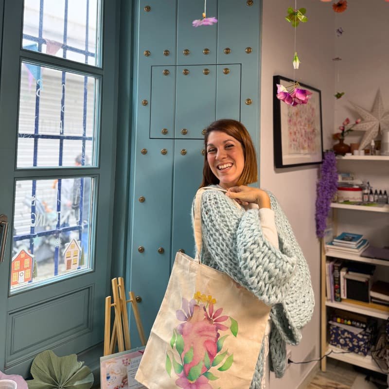 Aprenderás a combinar colores, texturas y formas de una manera relajada y divertida. Y lo mejor: al final te llevarás una tote bag de algodón 100% orgánico que será el reflejo de tu estilo único.
